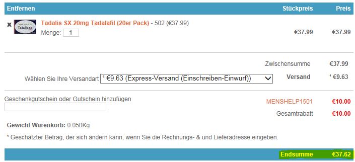 KamagraShopDeutschland hat geschrieben:Tadaga-20 ist nicht Tadadel, ist nicht Tadalis SX usw.