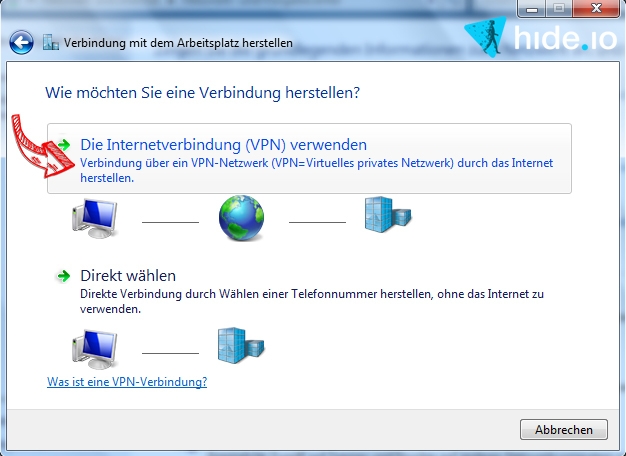 Schritt 4: Klicke auf „Die Internetverbindung (VPN) verwenden“.