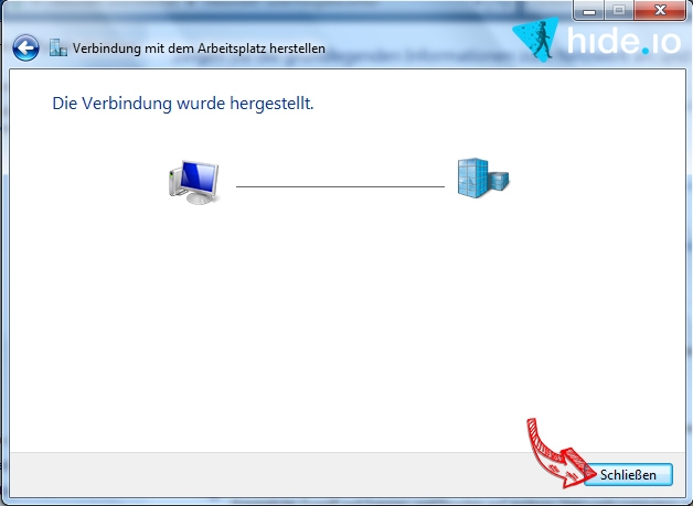 Schritt 6: Trage deine HIDE.IO Benutzerdaten ein, setze “Dieses Kennwort speichern“ und klicke auf „Verbinden“.
